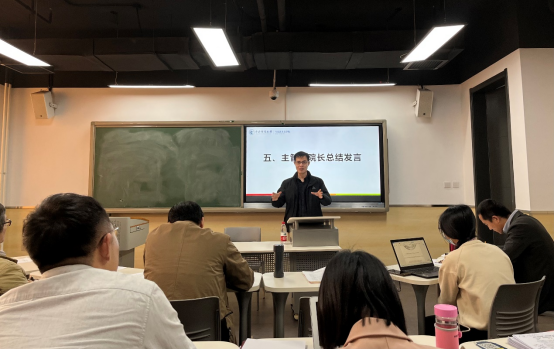 最后阶段,参会老师积极评价此次集体备课会的意义及其展现出的新变化,有老师专门提到期末考核的改革契合了时代要求,能够有效引导教师讲课和学生学习重点的积极转变。学院主管思政课教学副院长谢玉进教授结合其教学及管理等经验以及此次集体备课会召开情况作了总结发言。谢玉进老师在充分肯定此次集体备课会的引领价值和意义的基础上,提出两点要求和建议。一是,思政课的教学设计要以教材为遵循,既不能脱离教材,但也不能死讲教材;二是,硕士生思政课有其独特性,要立志作出成果,不断积淀、谋求突破,助力学院各门思政课建设和全部思政课教师齐头并进、协同发展、全面发展。