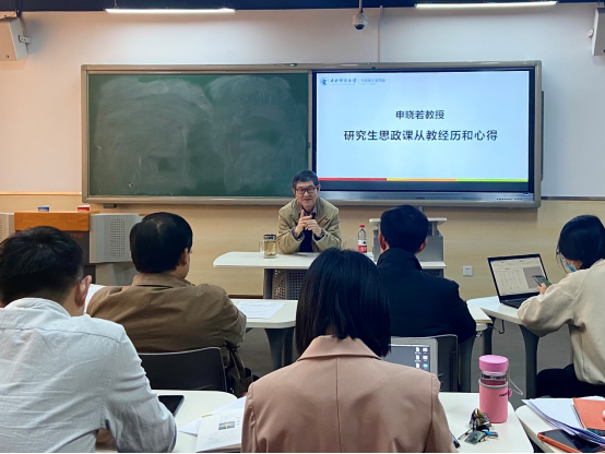 主讲教师主题发言环节,受本次集体备课会邀请,申晓若教授和哈战荣副教授分别作了主题发言。申晓若教授以“研究生思政课从教经历和心得”为题,回顾了其自1997年入职以来所经历的硕士生思政课的演变历程,并结合自己的授课经历分享了其关于本课程教学的一些思考。申晓若教授认为,首先,态度上,应该高度重视研究生思政课,主讲教师涉及三个主要建制教研室,老师们只有在本课程上多投入、多下功夫,教学才会有效果;第二,内容上,本课程应该讲出深度,作为一门针对研究生开设的思政课,应该和本科生课程有所区别,同时各专题焦点尽可能不要太大,太大就不容易讲出深度,课程内容要紧跟时事,为学生补齐最新时政内容,课程可灵活创设和运用机动课时。此外,申晓若教授最后专门建议老师之间要多多交流和沟通,共同努力将这门课程办好、讲好。