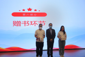 在典礼最后的赠书活动环节。学院硕导代表张忠胜副教授将《习近平谈治国理政》赠与2022级硕士研究生代表,学院博导代表谢玉进教授将《马克思恩格斯选集》、《习近平谈治国理政》赠与2022级博士研究生代表。沉甸甸的著作寄托了学院老师对新生们成长成才的殷切期盼。