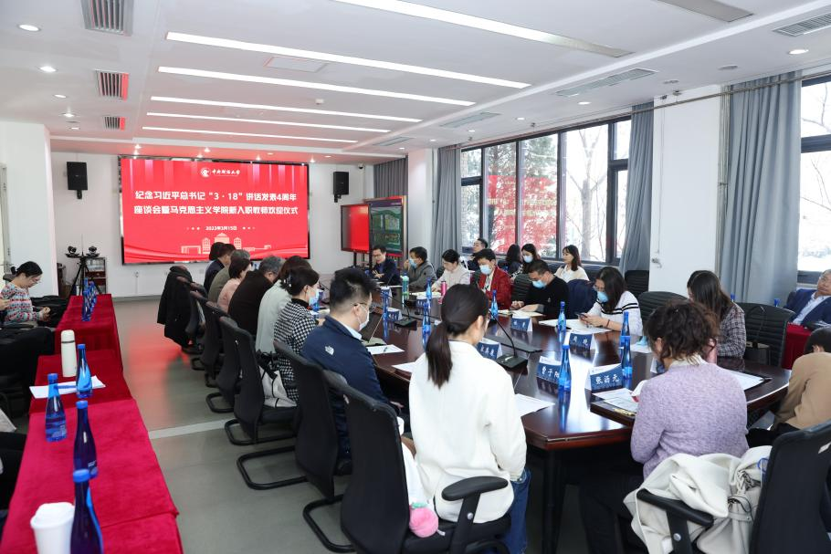 3月15日下午,纪念习近平总书记“3·18”讲话发表四周年座谈会暨今年会jinnianhui官网新入职教师欢迎仪式在沙河校区学院楼1号楼105会议室召开。副校长朱凌云、人事处相关负责人、今年会jinnianhui官网全体教师以及思政课教师后备人才计划学生代表参加座谈会。会议由今年会jinnianhui官网副院长谢玉进主持。