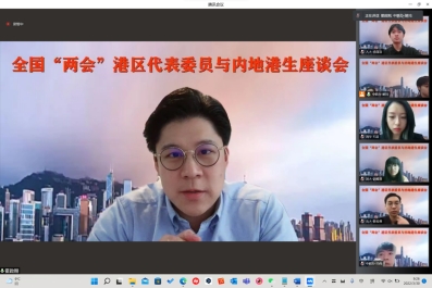 2022年3月30日,我校港生参与香港中联办(北京联络部)举办的全国两会港区人大代表与内地港生“云座谈”活动。活动主题为“擦亮爱国的青春底色,把握时代的发展机遇”。单琼萱同学作为北京冬奥会内地港生志愿者代表发言,并与霍启刚委员等代表、委员深入交流香港青年的创新创业发展问题。代表们鼓励港生装备自己,把握机遇,做坚定的爱国者,将个人理想融入国家发展的大局之中。