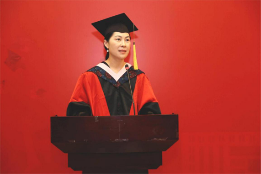 黄刚院长首先为毕业典礼致辞,对同学们的顺利毕业并开启人生新的旅途,表示最热烈的祝贺和最诚挚的祝福。黄刚院长深切寄语全体毕业生:一要永葆初心,坚定理想,勇往直前。马克思主义是我们共同的底色、不变的初心、前行的动力。希望同学们牢记马克思的科学真理,坚持向实践学习,做人类美好社会的积极建构者;牢记马克思的人民立场,坚持向人民学习,做人民美好生活的积极创造者;牢记马克思的斗争精神,坚持在斗争中成长,做人生美好未来的积极奋斗者。二要守住耐心,保持定力,行稳致远。事物的发展、社会的进步、人生的成功,都是一个过程。希望同学们在人生新的征程上以“任凭风浪起,稳坐钓鱼台”的坚定自信,以“千磨万击还坚劲,任尔东西南北风”的坚韧意志,以“千里之行,始于足下”的坚实行动,尽情享受人生的奋斗,努力成就奋斗的人生。三要独具匠心,追求卓越,出色出彩。中财马院人都有一个共同的品质,那就是干一行,爱一行,敬一行,兢兢业业,不断超越,追求卓越。希望这样的品质能够成为同学们今后在社会上的独特标识,能够伴随同学们去搏击未来的人生,能够成就同学们在各行各业的出色和出彩。黄刚院长最后祝愿同学们:奔赴星辰大海,总能永葆初心;即使千帆过尽,仍能守住耐心;在未来人生中必能独具匠心,为中国式现代化和中华民族伟大复兴添砖加瓦、增光添彩、贡献力量!