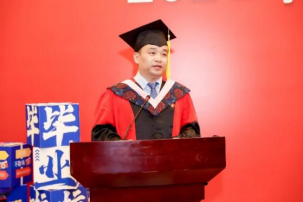 表彰结束之后,教师代表、校友代表和学生代表分别进行了发言。首先是教师代表发言。今年会jinnianhui官网博士研究生导师哈战荣教授作为教师代表发言。哈老师首先对全体毕业生表达了诚挚的祝福,祝愿每位同学从此开启人生的新篇章;接着对毕业生未来的工作生活提出了几点建议:一要做好从学校走向工作岗位的心理调试,完成学生身份的转变,尽快融入工作生活。要稳住心、沉住气,不要迷失自己,做好自己的职业规划;二要将个人发展与整个集体的发展结合起来,不要锋芒毕露,功利心太强;三要多做少说,注意在工作中与领导和同事的交流方式,促进有效的沟通;四要树立全局观,在工作中主动发现问题解决问题;五要分清工作任务的轻重缓急,做好规划,提高工作效率;六要及时处理好工作中可能出现的消极情绪,寻找问题的解决办法,保持积极向上的心态。最后哈老师再次祝福每一位毕业生在未来的工作岗位上前程似锦。