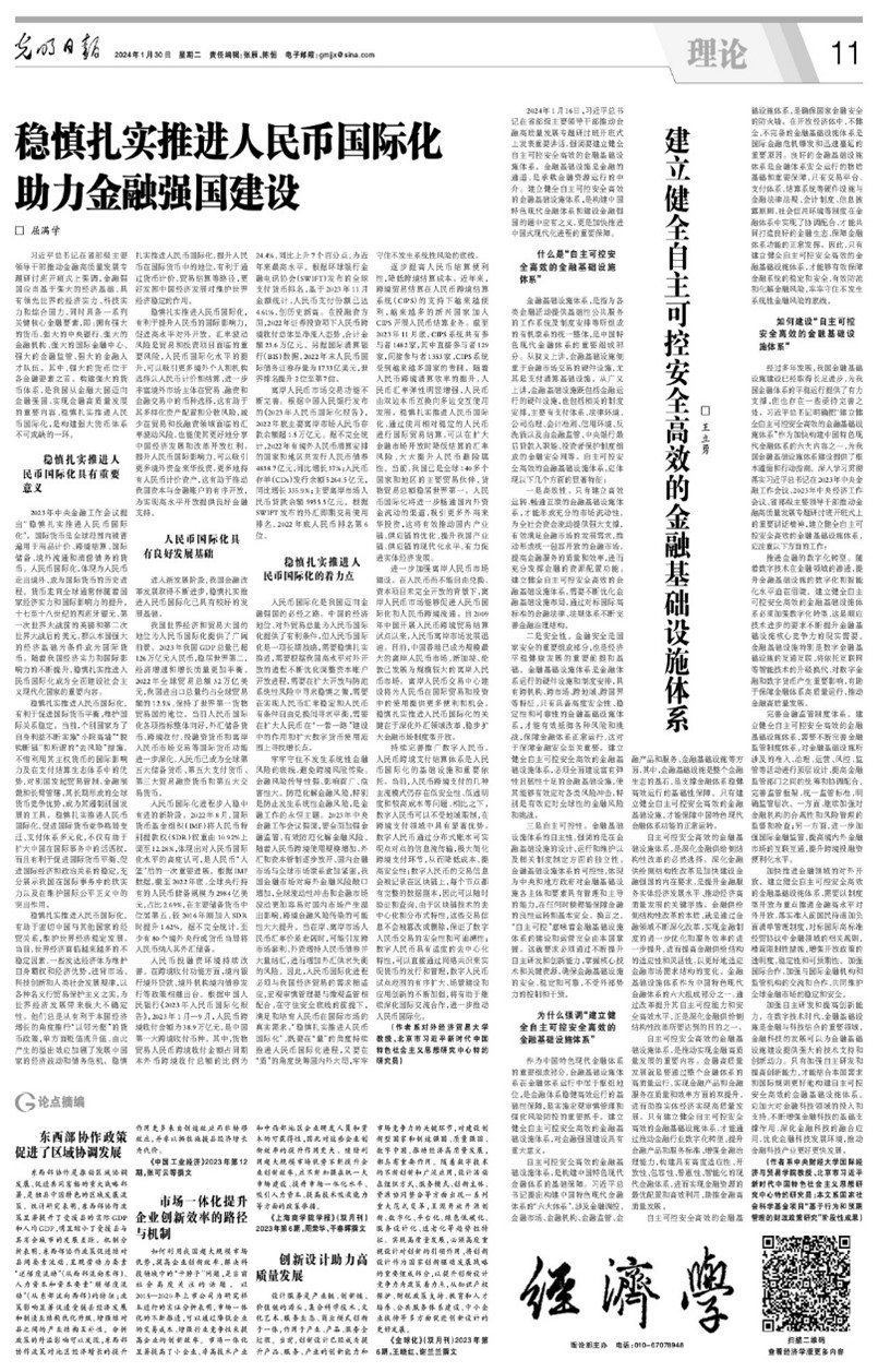 1月30日,《光明日报》理论版刊发我校科研处处长王立勇教授署名文章---《建立健全自主可控安全高效的金融基础设施体系》。