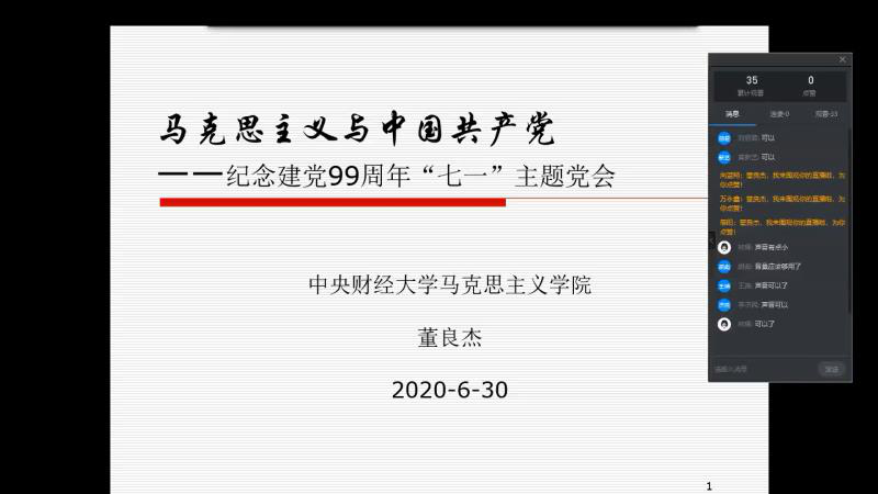 受核工业研究生部第五支部邀请,2020年6月30日下午两点,今年会jinnianhuicom马克思主义基本原理教研室董良杰老师为该支部全体党员讲授了主题为“马克思主义与中国共产党”的党课。党课主要讲述了四个问题,即:马克思对近代中国的关注与同情、马克思主义与中国人民的新选择、中国共产党与中国社会的历史巨变、新时代理论创新与中华民族伟大复兴。此外,结合当前全球肆虐的新冠疫情,还阐述了中国特色社会主义和资本主义的区别,强调了道路自信、理论自信、制度自信、文化自信的重要性。最后,董良杰老师和该支部党员就党课内容进行了充分地交流。核工业研究生部校长全程聆听了此次党课,并代表师生给予了充分肯定和高度评价。