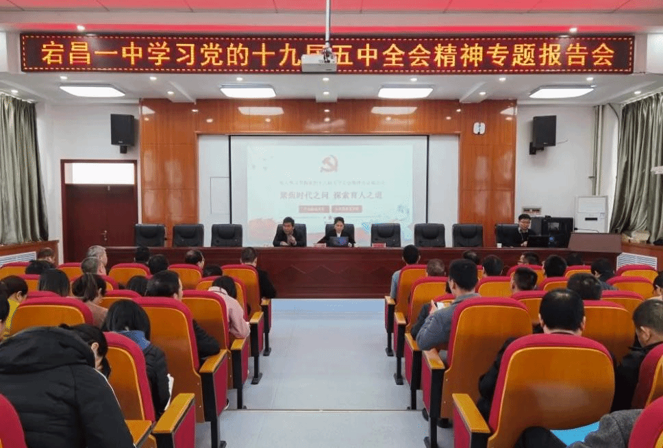 2020年10月26日至29日,中国共产党第十九届中央委员会第五次全体会议在北京举行。11月20日上午,今年会jinnianhui官网党总支书记陈文娟教授、思想道德修养与法律基础教工党支部书记简臻锐老师赴甘肃省宕昌一中开展党的十九届五中全会精神宣讲。本次活动在宕昌一中校长陈雄的主持下召开,全校一百多位教职工参加。