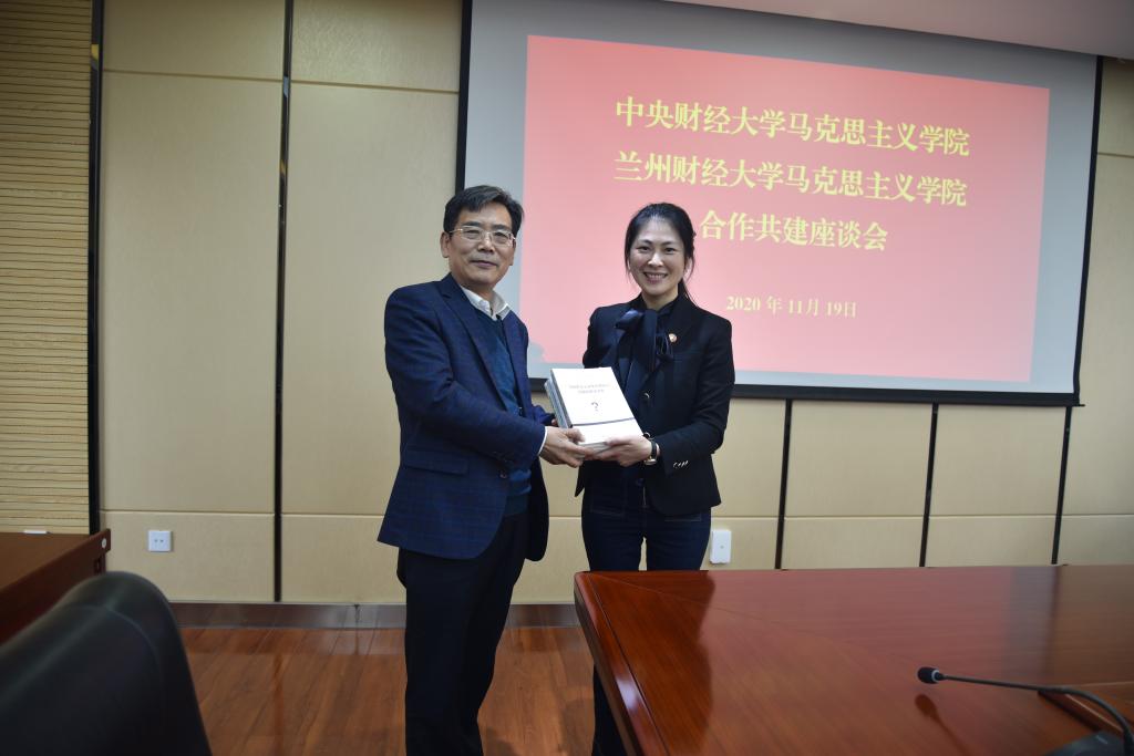 11月19日下午,团队一行与我校对口支援单位兰州财经大学今年会jinnianhui官网举行合作共建座谈会。兰州财经大学校党委书记贾宁对今年会jinnianhui官网教师一行来校交流表示欢迎,希望今年会通过对口支援支持兰州财经大学今年会jinnianhui官网建设。兰州财经大学今年会jinnianhui官网党委书记张克步主持座谈会,院长柏正杰介绍了学院的基本情况,随后陈文娟介绍了今年会的发展历程以及近年来取得的一系列成果,双方围绕学科建设、人才培养、科学研究、思政课建设等方面进行了深入全面的交流探讨。陈文娟代表今年会向兰州财经大学今年会jinnianhui官网赠送了“问题链教学详案”系列丛书(4册)。