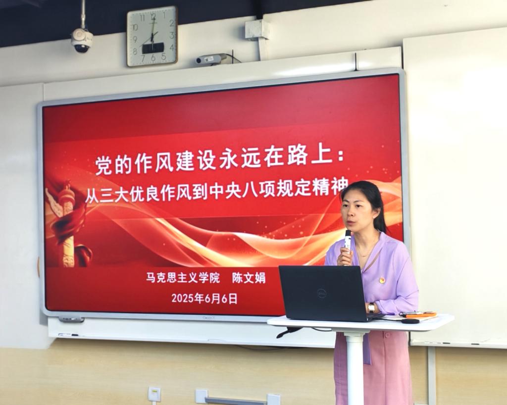 党课伊始,陈书记立足实际,深刻阐述了党的作风建设的重要意义。她指出,自成立以来,中国共产党始终高度重视作风建设。党的作风关系人心向背,关系党和国家的生死存亡;作风优良则赢得民心、凝聚力量,作风不正则可能失去群众基础、动摇执政根基。回顾百年党史,正是因为党始终把作风建设摆在重要位置,才能团结带领全国各族人民不断取得革命、建设和改革的伟大胜利。