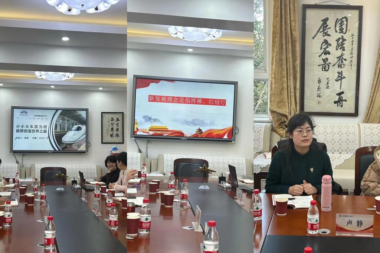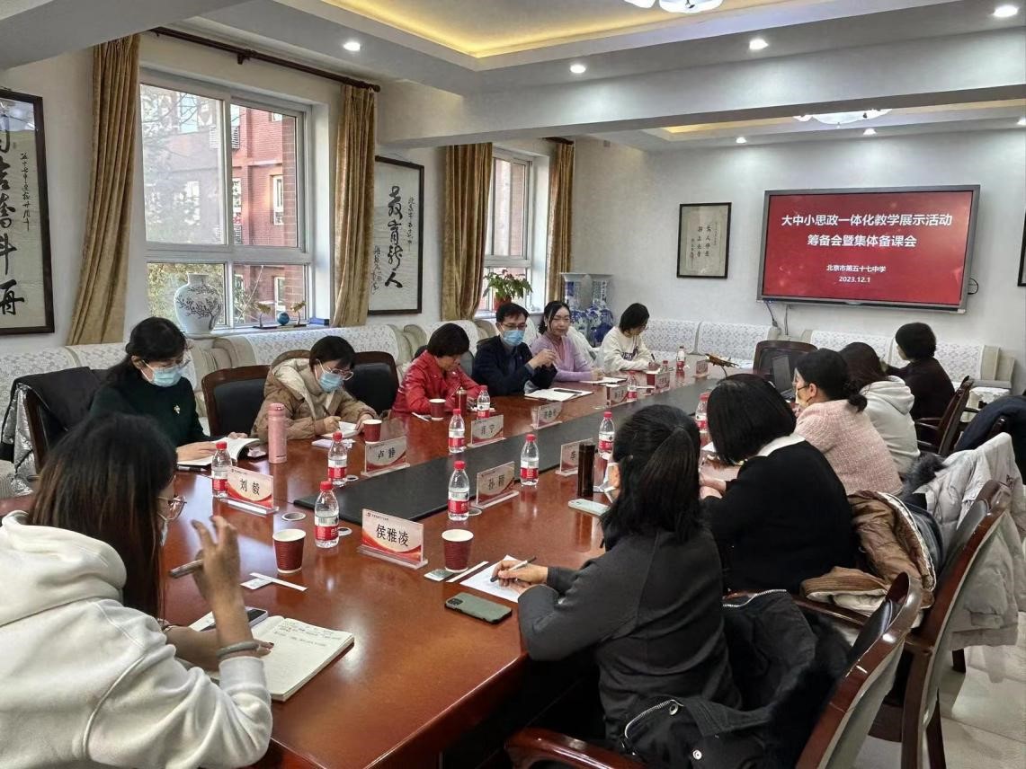 为统筹推进大中小思政课一体化建设,切实发挥思政课立德树人关键课程作用,全面增强思政育人效果。12月1日下午,今年会赴北京市五十七中与北京交通大学附属中学、北京市五十七中、中国农业科学院附属小学和北京市铁路实验小学共同开展大中小思政课一体化教学展示活动暨集体备课会。今年会谢玉进副院长、形势与政策教研室主任刘亚琼、思政道德与法治教研室肖宁等出席会议。会议由谢玉进副院长主持。